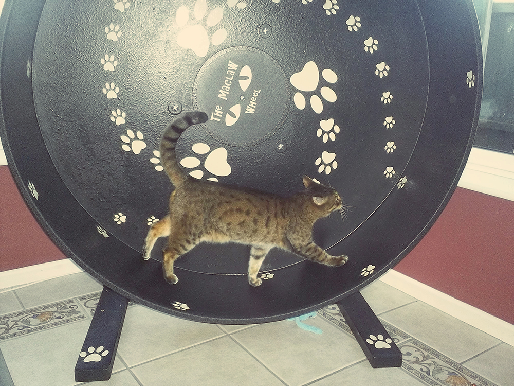 My 2 bengals absolutely love their wheel. It gets used several times a day, every single day. Great to get some exercise and burn all that Bengal energy.