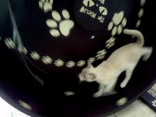 All Sunday after you delivered the wheel our Cats played on it, Tofi was like a girl possessed and wouldn't leave it alone, Bella kept pushing in which is quite hysterical to watch because Tofi runs facing left but Bella prefers facing right so once Bella gets on with her weight the whole wheel stops Tofi flies out and Bella pretends not to notice.