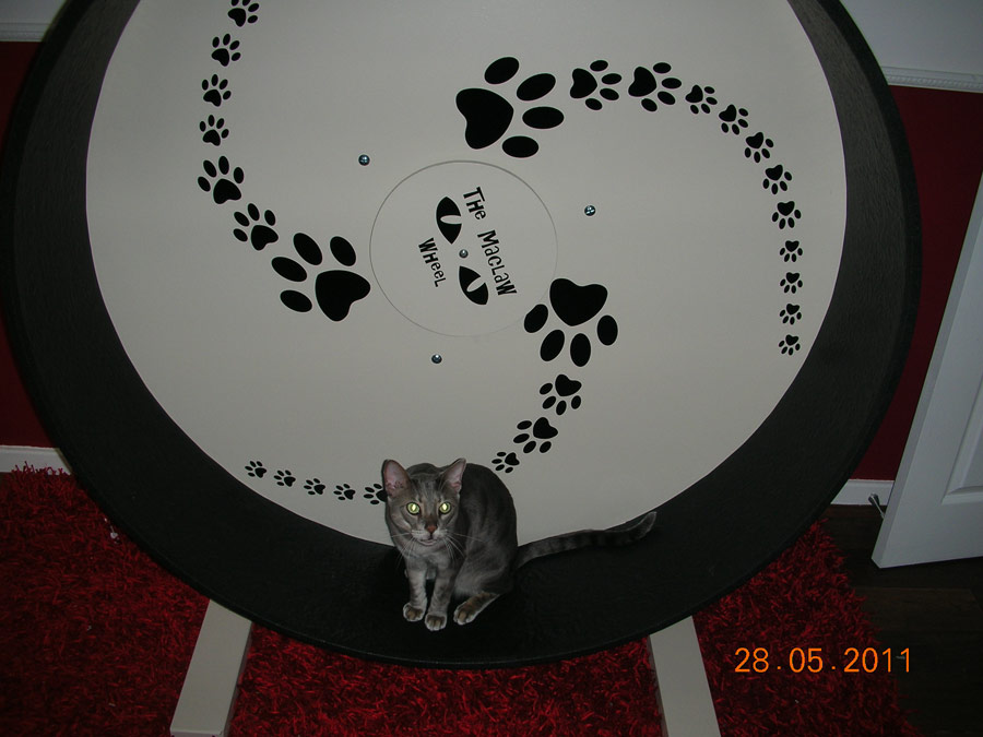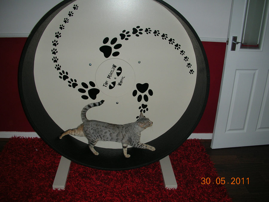 Thank you so much for our fantastic! Maclaw Wheel, from start to finish we received the best service and would highly recommend you to anyone. Our cats just adore our wheel and use it every single day, whether its a gentle jog or a manic sprint! Even our pregnant girl is using it as part of her antenatal exercise routine every evening.