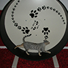 We are very happy with the wheel and Liam being a joiner is so impressed with the workmanship, very well made "bespoke" wheel, he also understands how much time and effort Allan must have put in when making it. It runs really quietly, the only way we know they are on it is you can hear their paws galloping away. The paw print decorations finish it off perfectly.