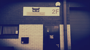 A wooden structure, designed to give a springboard effect for cats that like to sprint.